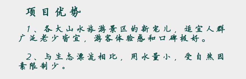 1、各大山水旅游景區的新寵兒,適宜人群廣泛老少皆宜,游客體驗感和口碑極好。